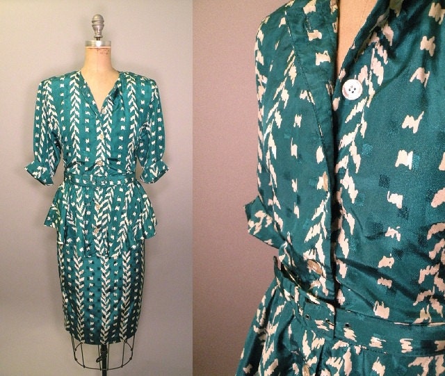 | Vintage Jonathan Martin teal tribal print peplum dress |